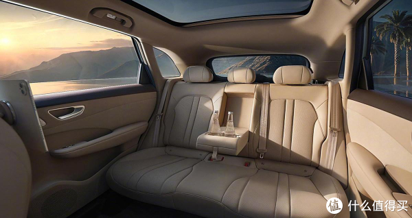 座椅布局采用2+3的5座设计,皮质包覆加打孔工艺,触感应该还行。门板手肘位置用类似麂皮的材质,这个细节处理得不错,能提升一些档次感。副驾背后还能外接平板电脑,这对家庭用户来说还是蛮实用的,孩子坐后排看动画片就方便多了。